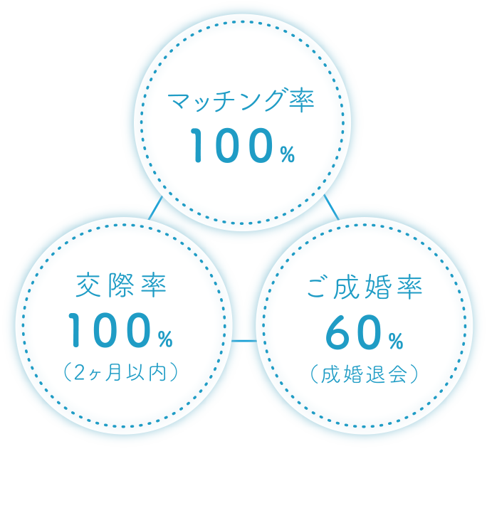 小さな相談所だからこそできる、それぞれのお客様に合った婚活をご提案します。当社にご加入されている半数のお客様は、大手から結婚相談所を乗り換えてこられる方です。私たちは一人一人の個性を大切にし、チャンスを逃さない、カタにはまらない婚活でサポートします。
